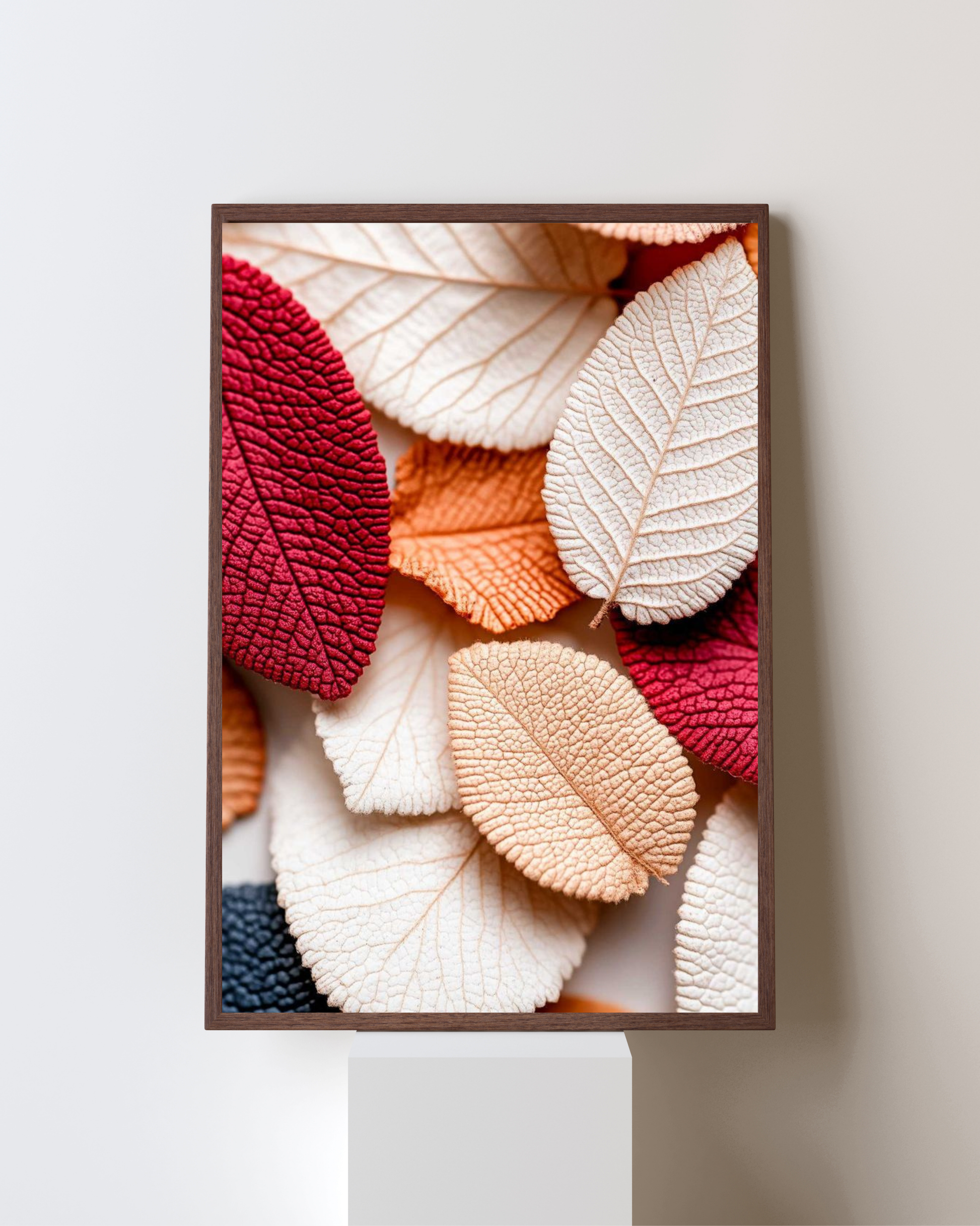 Celebrate the quiet elegance of nature with “Autumn Whispers”, a stunning wall art print featuring intricately detailed leaves in warm autumn hues of red, beige, and amber. Each leaf reveals its fine texture, creating a soothing balance between natural artistry and modern minimalism.