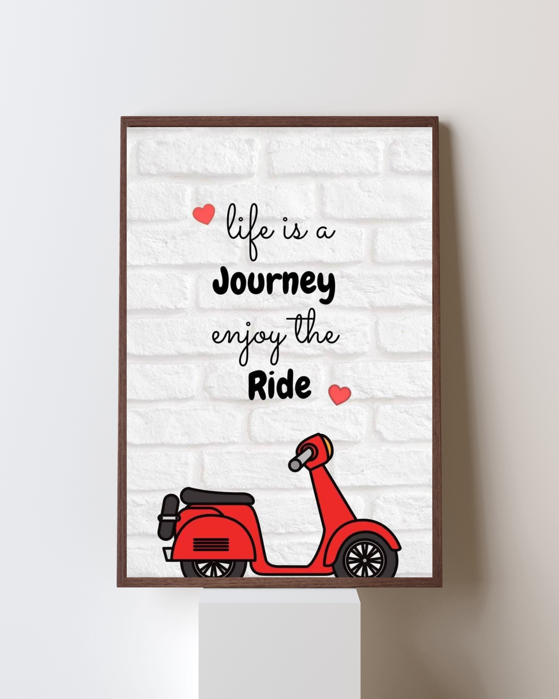 Life is a Journey, Enjoy the Ride” Motivational Wall Art | Red Scooter Quote Poster