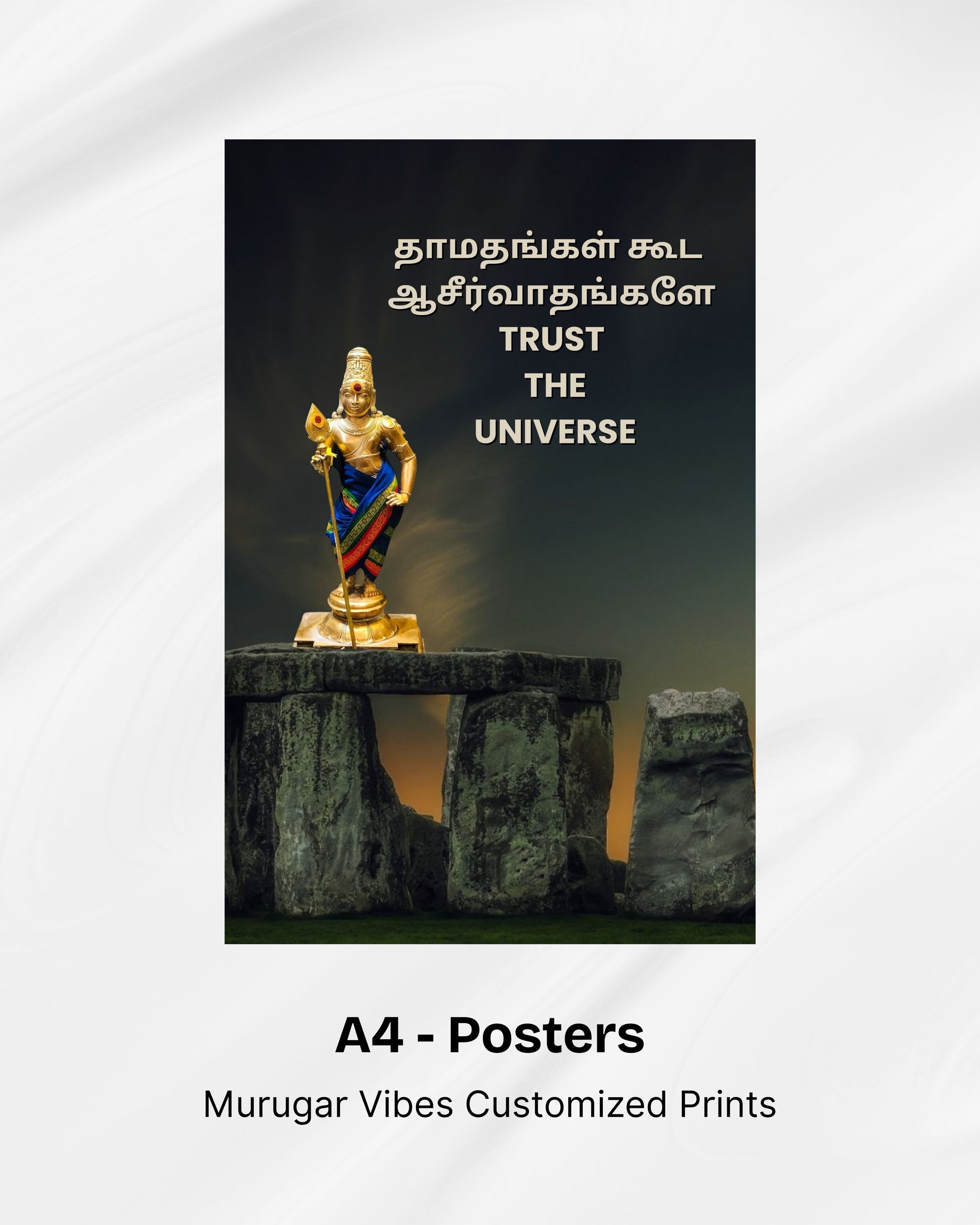 A premium collection of 6 A4 posters featuring Murugar Vibes inspirational and divine designs. Perfect for your living space, meditation corner, or as a meaningful spiritual gift.