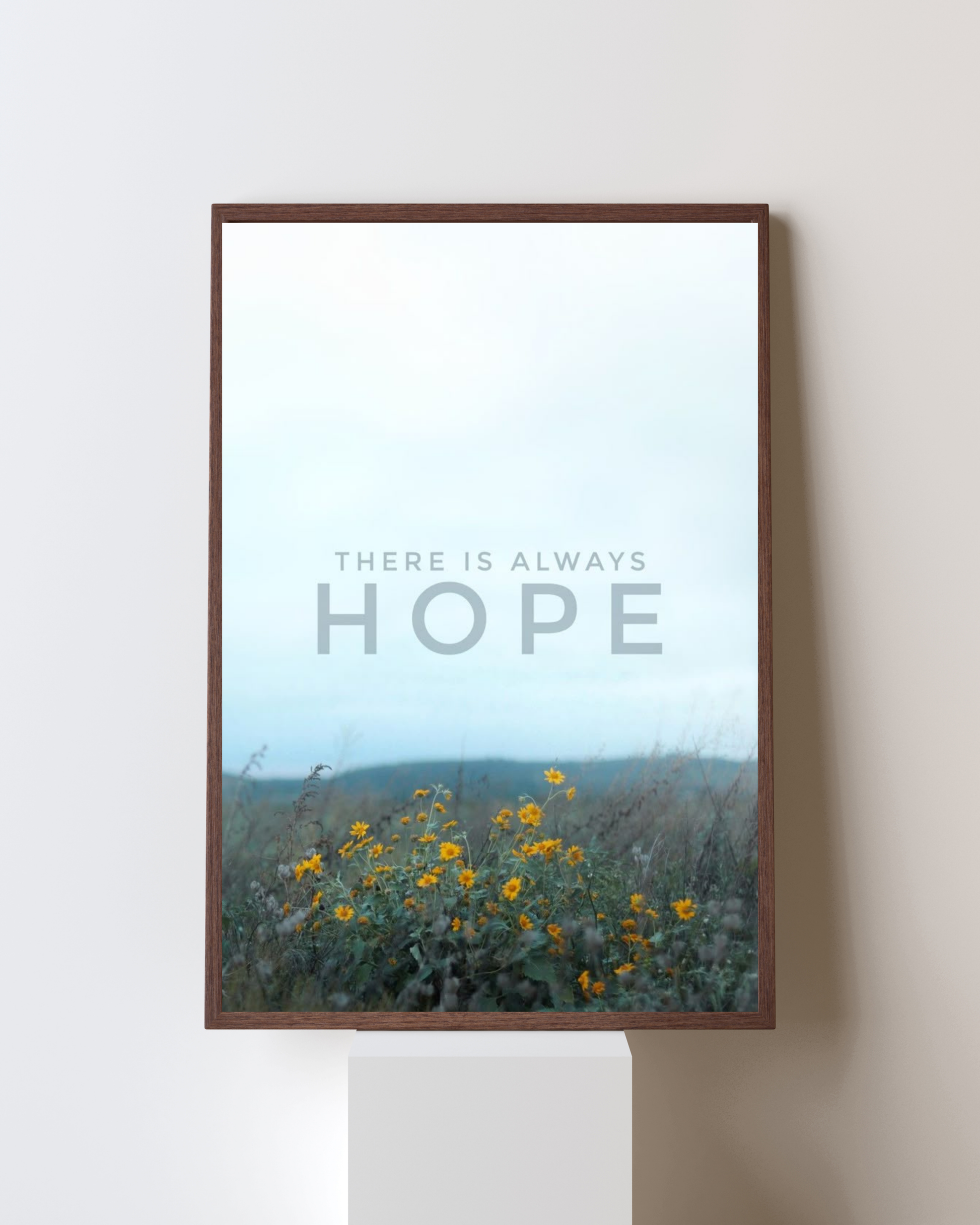 Bring a gentle reminder of positivity into any space with this calming “There Is Always Hope” inspirational poster. Featuring soft sky tones paired with vibrant yellow wildflowers in an open field, this artwork beautifully balances serenity and encouragement.